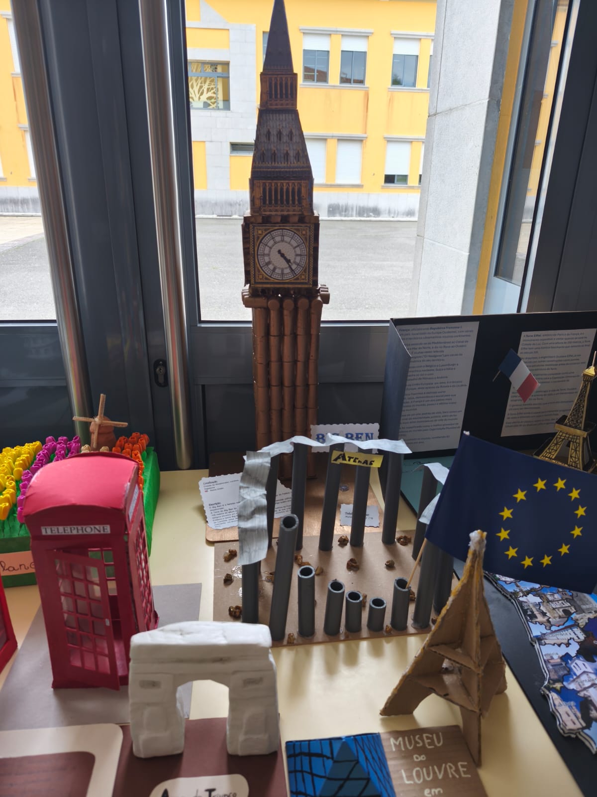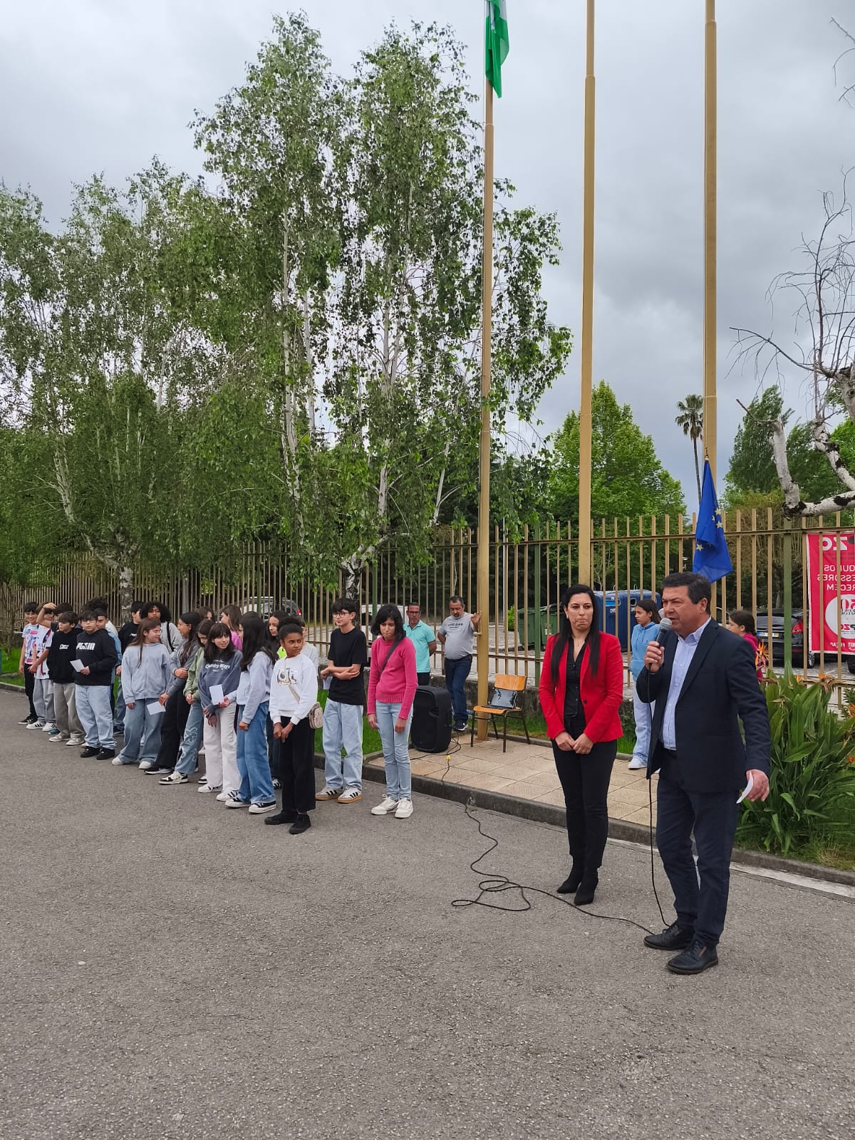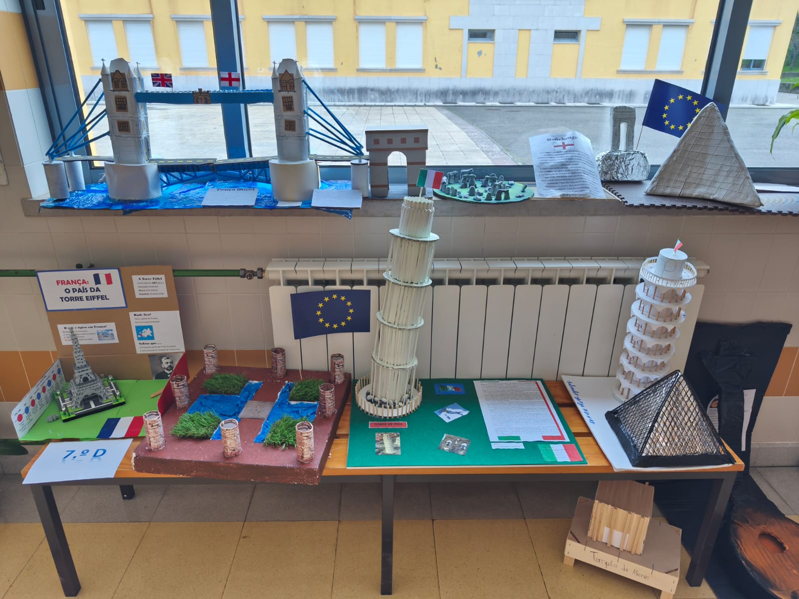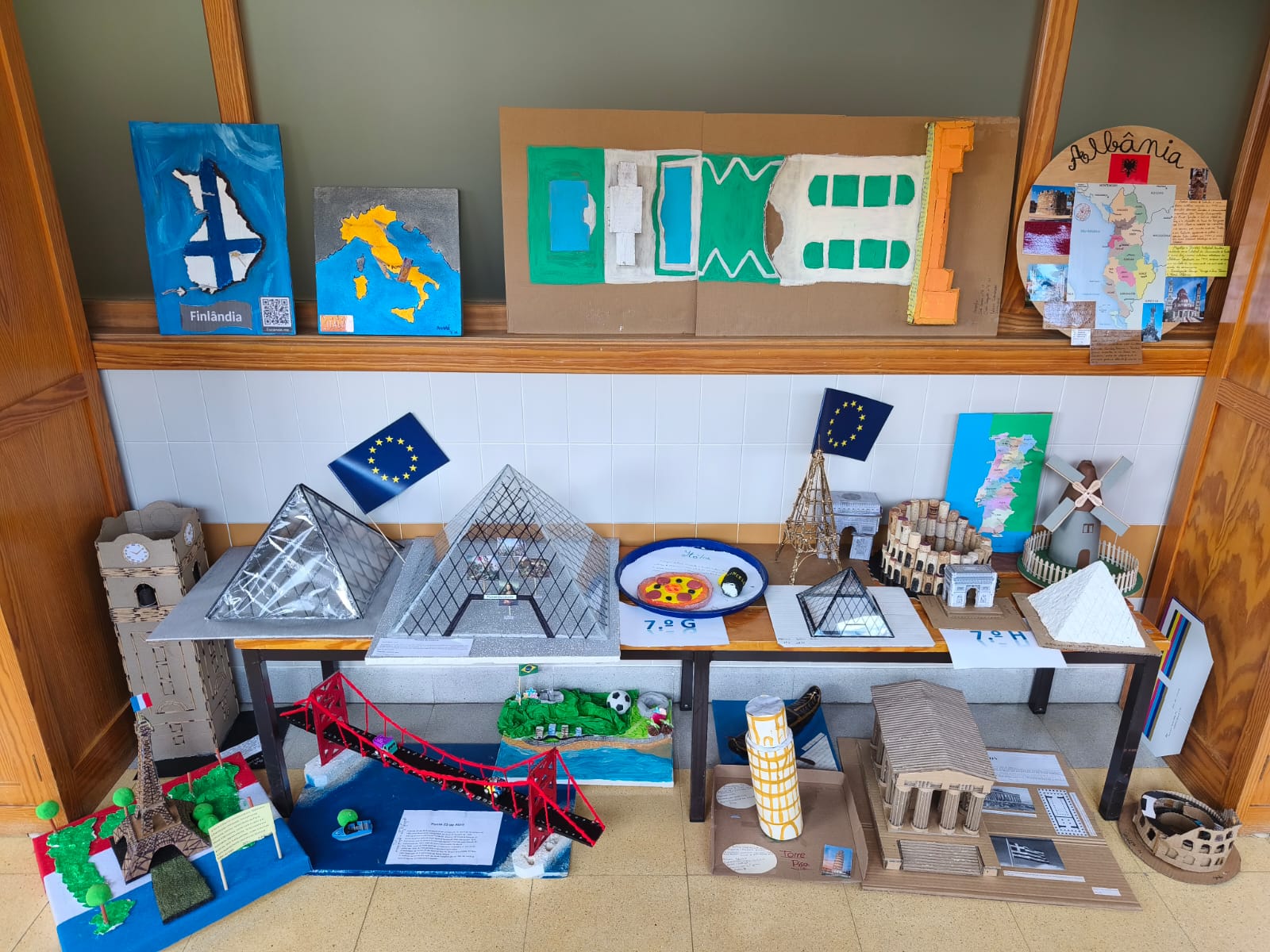Os alunos do 7.º ano, para assinalarem o dia, deram um contributo especial, ao prepararem, no âmbito da disciplina de Geografia, uma magnífica exposição de maquetes e de trabalhos sobre os países da Europa. Esta atividade, orientada pela docente Marina Machado, destacou-se pelo envolvimento e criatividade dos alunos, contando também com o imprescindível apoio das famílias, que participaram ativamente na construção das maquetes, tornando este projeto verdadeiramente colaborativo. O momento deste dia ficou ainda mais especial com a atuação dos alunos do 6.º ano, que emocionaram todos os presentes ao entoar o Hino à Alegria, símbolo oficial da União Europeia. A cerimónia culminou com o hasteamento da bandeira da UE, um gesto simbólico que reforça os valores de paz, união e diversidade entre os povos. Celebrar o Dia da Europa é reconhecer a importância de uma comunidade unida que promove os direitos humanos, o desenvolvimento sustentável e a cooperação internacional — valores essenciais para o futuro do mundo. Partilhamos convosco alguns registos desta comemoração, cheios de cor, dedicação e espírito europeu!