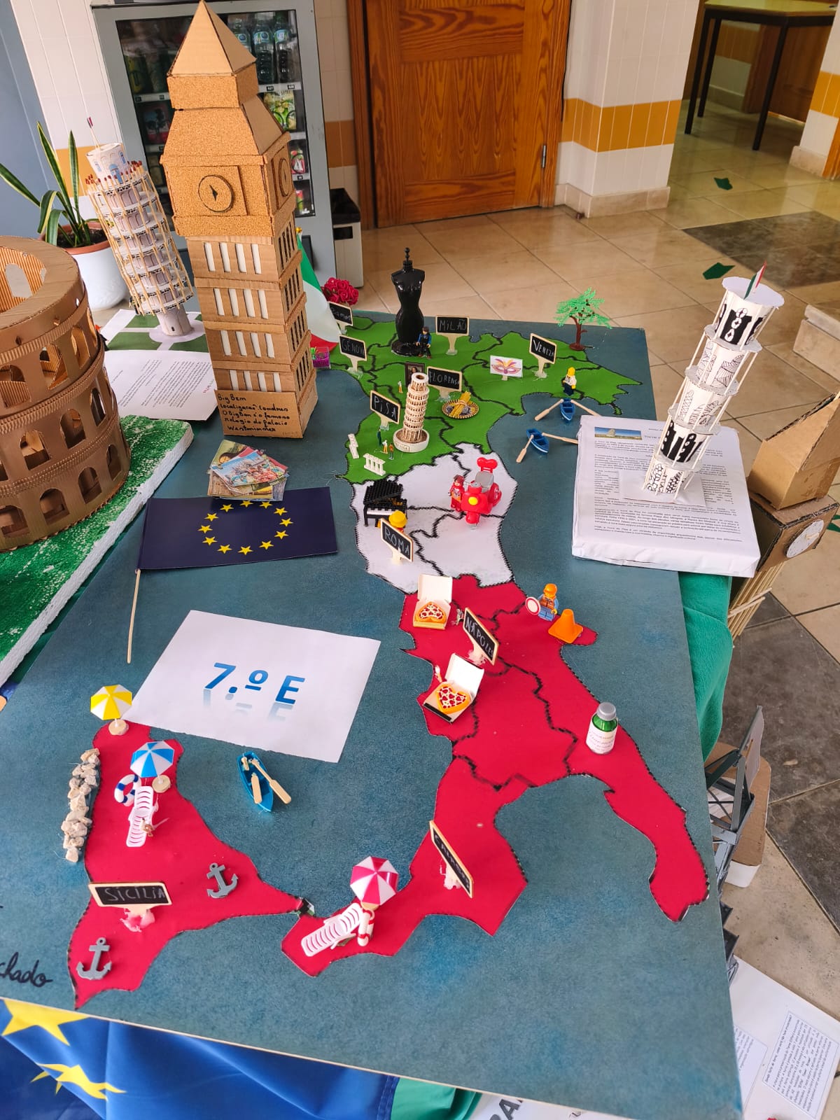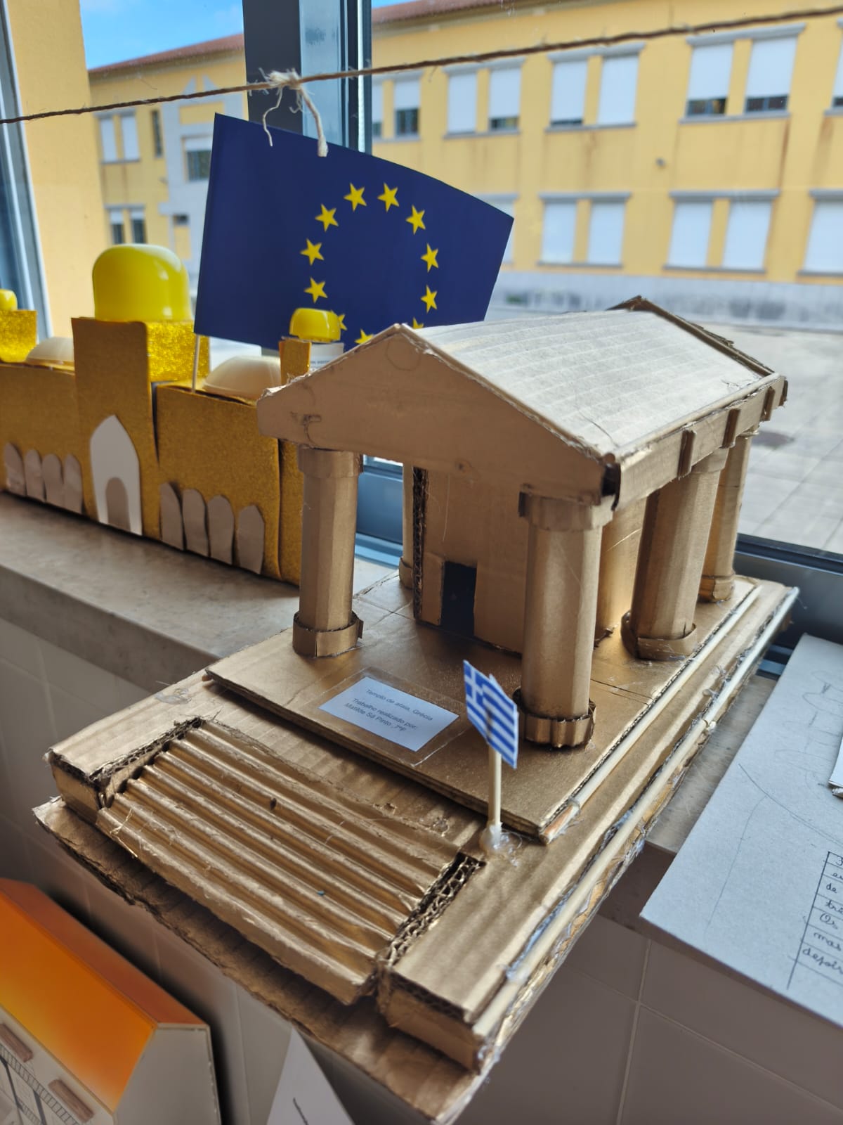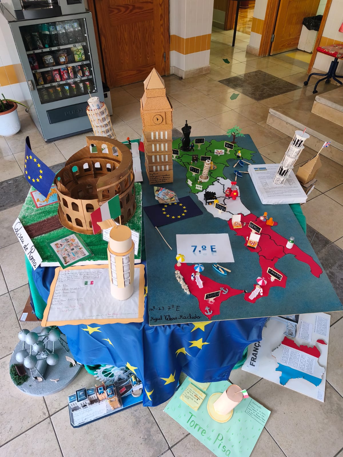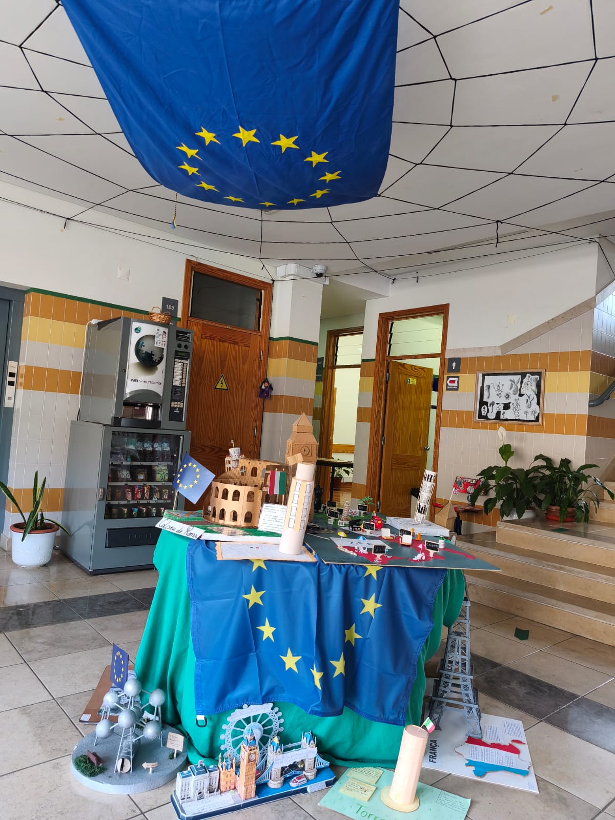 Os alunos do 7.º ano, para assinalarem o dia, deram um contributo especial, ao prepararem, no âmbito da disciplina de Geografia, uma magnífica exposição de maquetes e de trabalhos sobre os países da Europa. Esta atividade, orientada pela docente Marina Machado, destacou-se pelo envolvimento e criatividade dos alunos, contando também com o imprescindível apoio das famílias, que participaram ativamente na construção das maquetes, tornando este projeto verdadeiramente colaborativo. O momento deste dia ficou ainda mais especial com a atuação dos alunos do 6.º ano, que emocionaram todos os presentes ao entoar o Hino à Alegria, símbolo oficial da União Europeia. A cerimónia culminou com o hasteamento da bandeira da UE, um gesto simbólico que reforça os valores de paz, união e diversidade entre os povos. Celebrar o Dia da Europa é reconhecer a importância de uma comunidade unida que promove os direitos humanos, o desenvolvimento sustentável e a cooperação internacional — valores essenciais para o futuro do mundo. Partilhamos convosco alguns registos desta comemoração, cheios de cor, dedicação e espírito europeu!